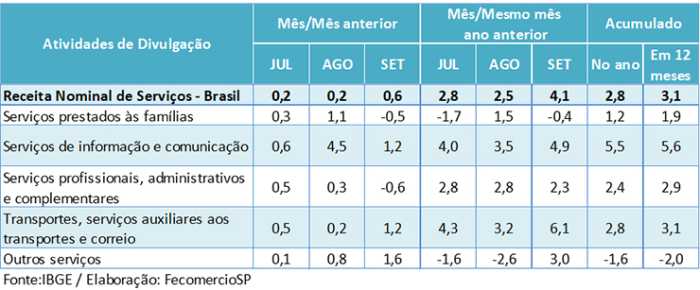 Tabela 2 pesquisa mensal do setor de serviços indicadores do volume de serviços, segundo atividades de divulgação brasil — setembro 2025 — variação (%)