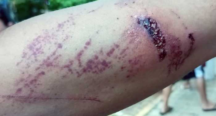 Abaixo imagens dos ferimentos apresentados pelo outro jovem, que sobreviveu.