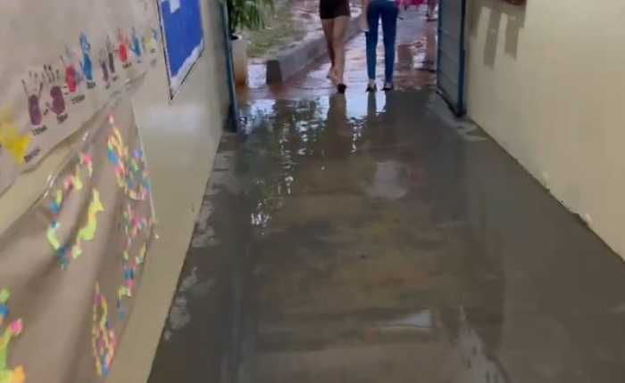 Imagens viralizadas mostram salas e corredores com água acumulada na Escola Ivone Canessa; caso pode motivar atuação do Ministério Público