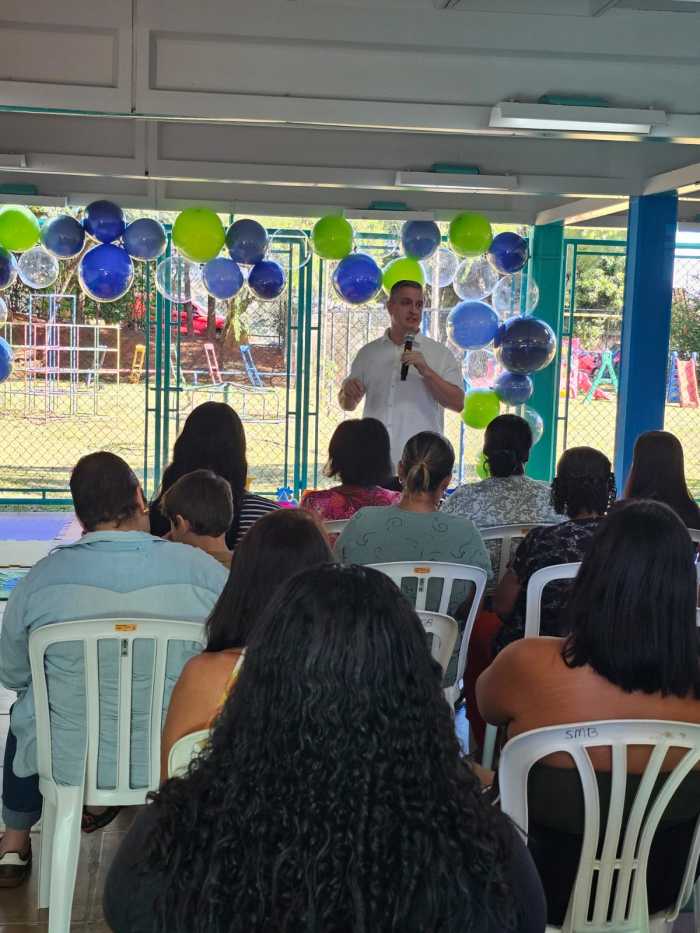 Secretário de Gestão, Paulo Boldrin, discursa na reinauguração da creche