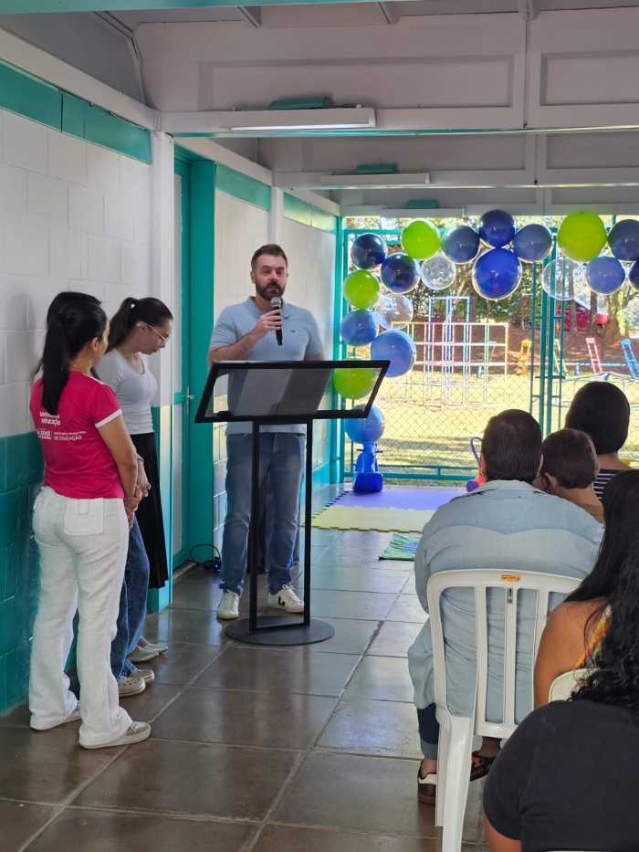 A cerimônia de reinauguração reuniu autoridades municipais, servidores da educação, pais e membros da comunidade escolar, marcando a entrega do espaço após a conclusão das intervenções.