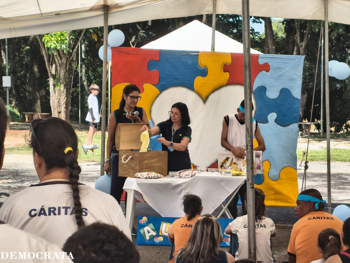 Ação promovida pela Escola Especial Cáritas reuniu comunidade em mobilização sobre o autismo
